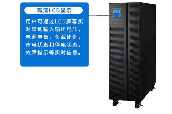 用戶(hù)可通過(guò)LCD屏幕實(shí)時(shí)查詢(xún)輸入輸出電壓,電池電量,負(fù)載比例,市電狀態(tài)和停電狀態(tài),故障指示等實(shí)時(shí)信息。
